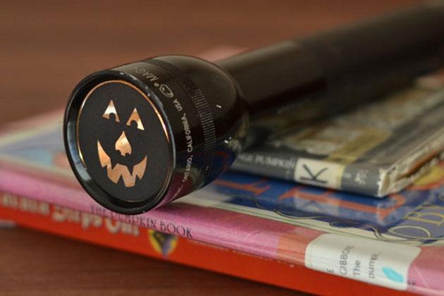Pegue em uma lanterna que tenha por casa e utilize a parte por onde sai a luz como molde. Coloque a lanterna em cima de uma cartolina preta e contorne o círculo da lanterna por onde sai a luz. De seguida, recorte o círculo e desenhe caretas a lápis, daquelas que se costumam desenhar nas abóboras. Corte o desenho feito e cole com fita na lanterna. Aproveite as festas de Halloween, que normalmente têm a luz mais baixa, para pregar partidas aos seus amigos! Você pode utilizar esta técnica em luzes maiores, como lâmpadas ou abajures e ter uma decoração de Halloween super original.