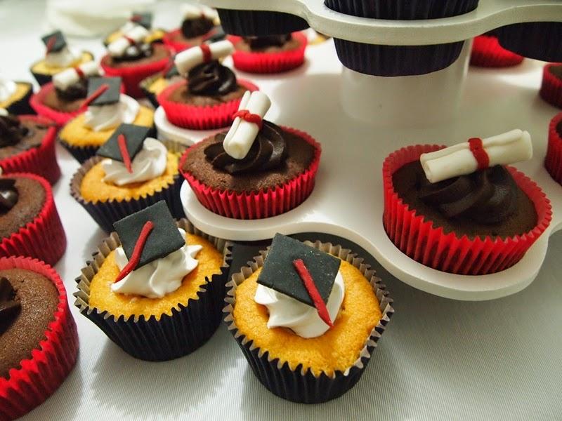 chapéus de formatura nos mais variados tamanhos espalhados pelo espaço; seja decorando as mesas ou até mesmo os docinhos;