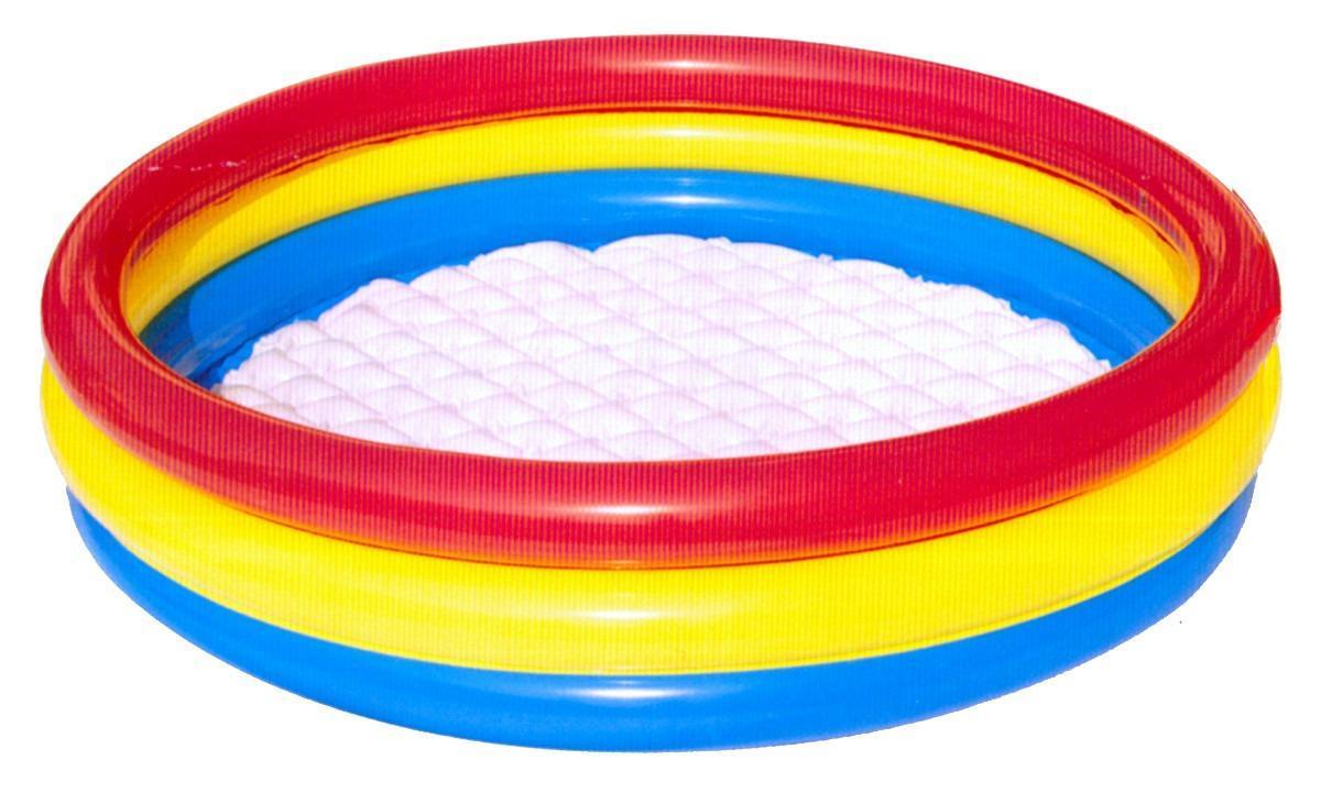 Uma vez que tiver todos os materiais é hora de montar a máquina de espuma. Encha a piscina e coloque perto da área do jardim onde vai fazer sua festa. Quando estiver inflada coloque dentro da mesma o recipiente cilíndrico de pé e com a abertura para cima.