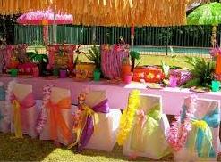 Se começarmos pela decoração do espaço onde vamos celebrar a festa havaiana, temos que conseguir as típicas lâmpadas de cores as lanternas de papel, bem como as tochas (quer sejam reais ou apenas simuladas, estas últimas mais seguras). Também será imprescindível encher a casa ou o jardim de motivos florais, palmeiras e alguns elementos de madeira.