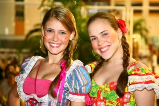 Trajes. Algo que não pode faltar numa festa junina é um traje típico destas festas. As mulheres devem usar algum vestido estampado, fazer trancinhas no cabelo e colocar alguma maquiagem. Os homens devem usar uma calça remendada, uma camisa ao xadrez e um chapéu de palha. Lembre-se de indicar no convite que todos devem vir de caráter, será muito mais divertido.