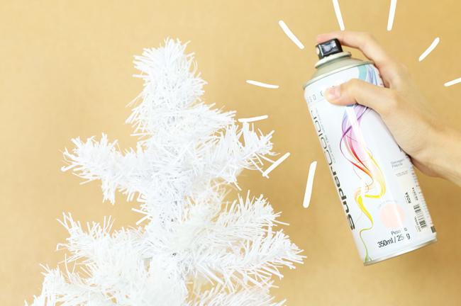 Para isso, só precisa adquirir pintura em aerossol da cor que desejar e ir para um espaço ventilado de sua casa começar a pintar a sua árvore de natal. Não se esqueça de usar umas luvas e colocar por baixo e ao redor da árvore folhas de jornal para não manchar a superfície. Num abrir e fechar de olhos terá uma árvore de natal nova!
