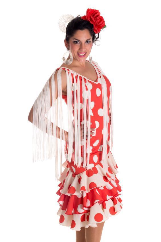 As cores essenciais da fantasia de flamenca costumam ser vermelho, preto e branco. Os trajes mais elegantes são formados por saias vermelhas e as partes superiores pretas; um elemento muito característico destas roupas são as bolinhas brancas, algo tipicamente flamenco.