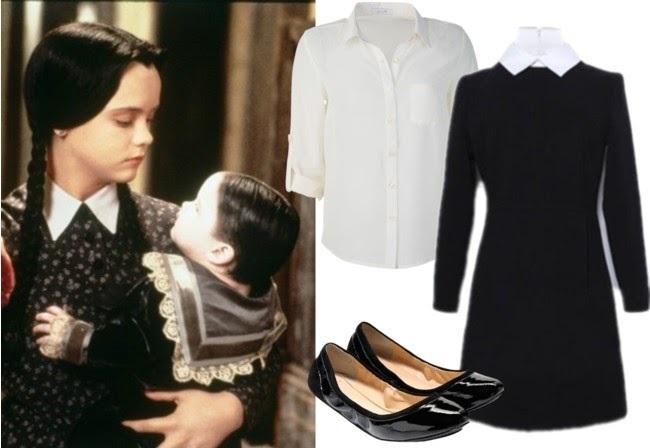 A maioria das lojas de departamento tem o clássico vestido de Vandinha Addams na sua coleção de outono-inverno, logo, é bem provável que você consiga um já pronto. Mas fique tranquila: também é possível fazer uma fantasia de Vandinha improvisada! Basta colocar uma camisa social branca por baixo do vestido preto na altura dos joelhos ou um pouco acima.
