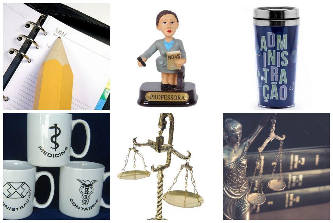 Além dos bonequinhos, existem outros objetos decorativos simbólicos que podem ser ideais para decorar o novo ambiente de trabalho do formando, ou simplesmente para deixar como recordação da formatura. Para te ajudar na hora da escolha, pesquise os símbolos de cada profissão, assim você consegue fugir do óbvio mas ainda ter um significado.