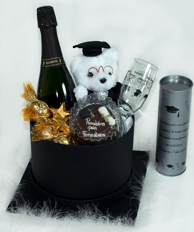 A felicidade é tanta no dia da formatura que muita gente acaba extrapolando na bebida e tem um dia seguinte um pouco difícil após a festa. Se você conhecer bem o seu amigo e acha que isso pode acontecer com ele (a), prepare um kit ressaca com tudo aquilo que pode ajudá-lo a viver o dia seguinte da maneira mais amena possível. Vale incluir no kit um vale de alguma comida 'de ressaca' como hambúrguer ou pizza, por exemplo.