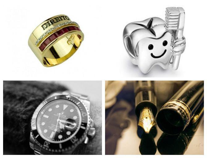 As joias como presente de formatura podem ter um significado tão intenso quanto o do anel, sejam elas novas ou repassadas. Na falta de ideias, existem pingentes que representam as profissões e sempre são uma salvação como presente de formatura.