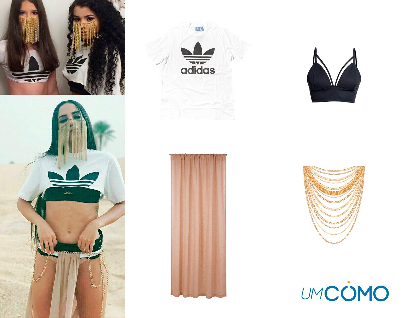 O figurino de Anitta e Pablo Vittar no clipe Sua Cara também serve de inspiração para muita gente na hora de criar uma fantasia. A dupla aparece com fantasias diferentes ao longo do clipe, mas um das mais fáceis de improvisar pede basicamente uma camiseta branca cortada, véus e correntes: