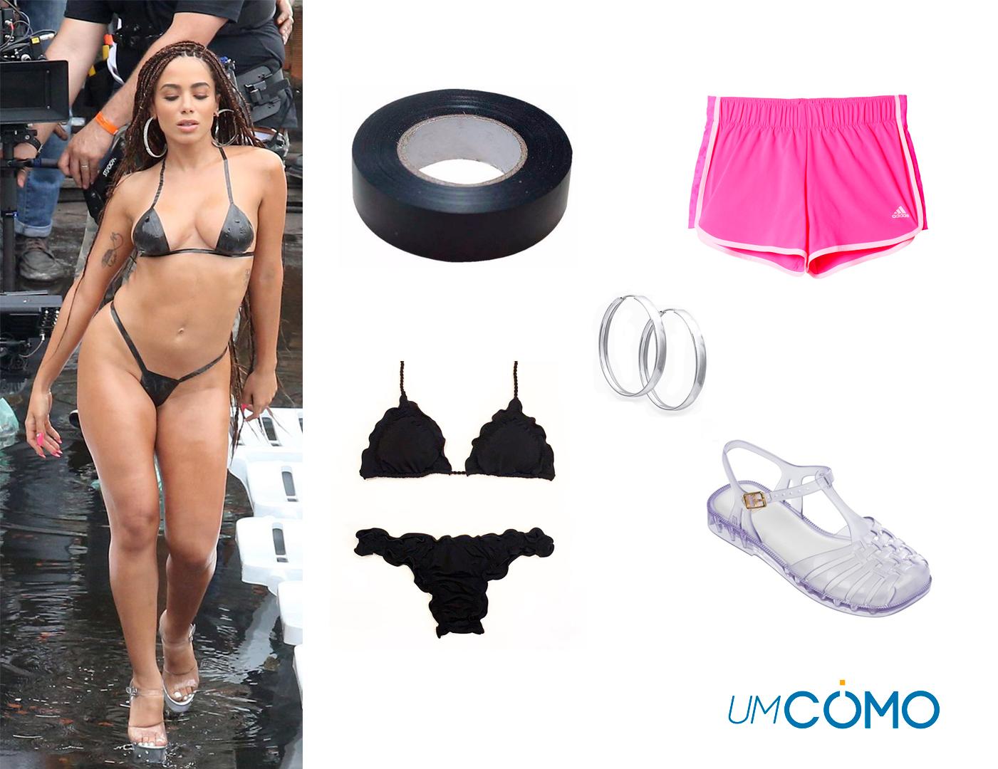 Um dos figurinos mais impactantes da diva é também uma das fantasias de Anitta mais fáceis de fazer e mais baratas. Fita isolante e um pouco de jeitinho é basicamente tudo o que você precisa para ser reconhecida em um piscar de olhos como a Anitta em Vai Malandra: