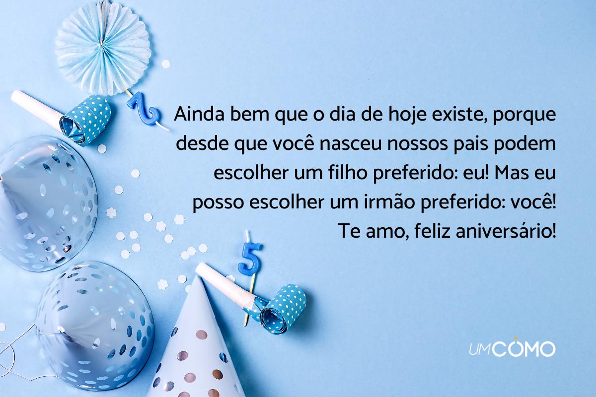 - Ainda bem que o dia de hoje existe, porque desde que você nasceu nossos pais podem escolher um filho preferido, eu! Mas eu posso escolher um/a irmã/o preferida/o: você! Te amo, feliz aniversário!