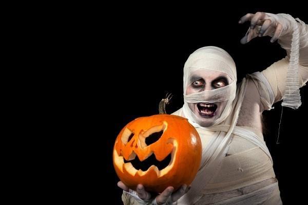 Este é outro dos jogos mais divertidos que pode preparar para uma festa infantil no Halloween, além disso vai conseguir que as crianças se esforcem ao máximo. Como o seu nome indica, trata-se de envolver uma criança ou adulto até ficar completamente coberto como uma múmia. Para isso, pode utilizar rolos de papel higiênico ou bandagem, enrolando o corpo até ao pescoço deixando a cabeça livre.