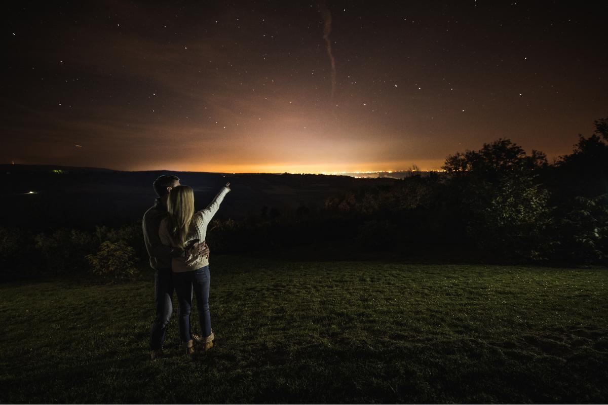 Se você tem acesso a um lugar escuro longe da luz artificial, desfrutar da magia do céu noturno pode ser uma experiência fascinante. Identifique constelações, compartilhe histórias e simplesmente aproveite o silêncio e a beleza do universo. Esse tipo de atividade convida a reflexão e pode ser o momento perfeito para falar sobre sonhos, objetivos e a imensidão do amor compartilhado. Se vocês são amantes da natureza e querem dar um passo adiante, podem viver a experiência de um acampamento e passar uma noite sob o manto estrelado.