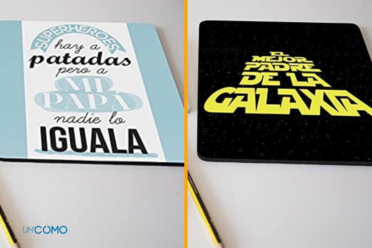 Caso prefira presentes personalizados para o dia dos pais, você pode adicionar uma mensagem especial ao mouse pad, por exemplo, os mostrados na imagem.