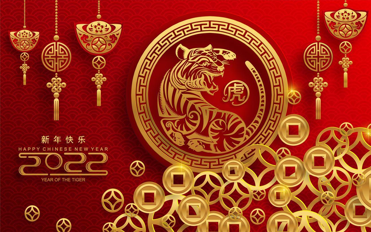 Todas as casas, ruas e edifícios em que o Ano Novo Chinês 2022 é comemorado são decorados em vermelho. É a cor principal deste festival porque o vermelho é considerado um tom auspicioso. Por esta razão, você pode ver lanternas vermelhas penduradas nas ruas, dísticos vermelhos colados nas portas e edifícios oficiais e bancos decorados com quadros de Ano Novo avermelhados, representando imagens de prosperidade.